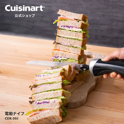Cuisinartの電動ナイフは、焼きたてのパンやジューシーなお肉、水分たっぷりの野菜、そしてフルーツなど、切りにくい食材もきれいにスパっと切ることができる便利…