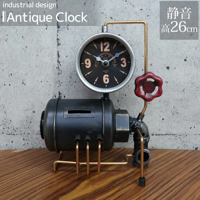 ボイラー室のスチーム管やスチームメーターをイメージしたユニークなデザインが特徴の置き時計です。工業的でシンプルなインテリアにぴったりで、ヴィンテージ感あふれる使…