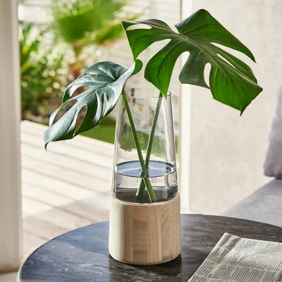 スモークグレーのガラスとナチュラルウッドのバイカラーがスタイリッシュなELEMENTSのFlower Vaseです。シックな色合いに程良い透明感があり、枝モノや…