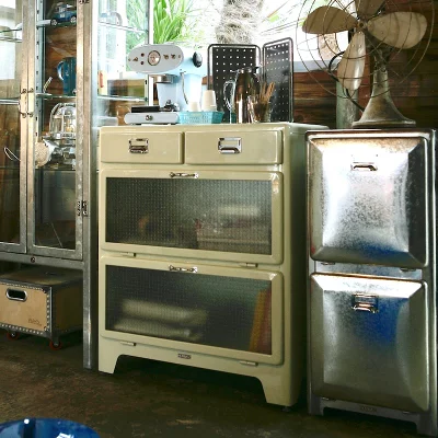 アメリカンテイストが魅力的で、腰高サイズが使いやすいDULTONの複合キャビネットです。ドローワー2杯とガラス付き下開き扉2段というユニークな組み合わせが特徴で…