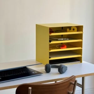 Storage Caddyは、よく使うものを手軽に整理し、そのまま持ち運べる便利な収納アイテムです。内側に仕切りが設けられているため、細々としたものもすっきり整理整頓でき、文房具、工具、リモコン、メガネ、メイク道具など、様々な小物をまとめておくのに最適です。さっと持ち運べる取っ手付きで、机上収納に適したサイズにアレンジされているため、机に置きっぱなしにしておいて必要なものをすぐに取り出せたり、キャディーごと持ち出せのも◎。ごちゃごちゃしたものをまとめて整理できるオーガナイザーとして、デスク周りやキッチン、バスルームなど、様々な場所で活用できます。さらにコンパクトにしたSサイズもあり、用途に合わせて組み合わせることで、より効率的な収納を実現できます。